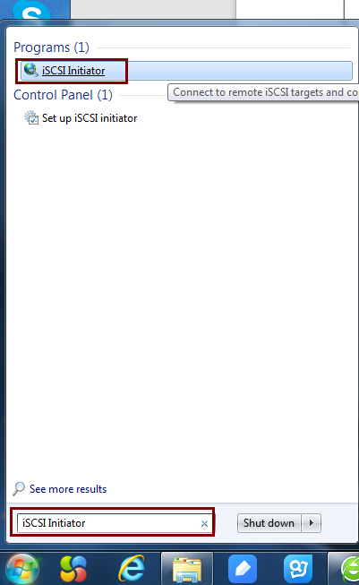 4.Go to client pc ,search and run “iSCSI Initiator”